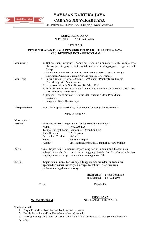 Surat keputusan ya yayasan perguru perguruan an islam. 207 pekalongan selatan kota pekalongan, tlp. Contoh sk guru tetap yayasan by tjoetnyak izzatie 72518 views. Sk kepala desa, kumpulan surat keputusan (sk) kepala desa tentang apa saja, contoh format sk kades terbaru dan lengkap format pdf dan doc (word). Urip sumoharjo, kradenan gang 1, no.