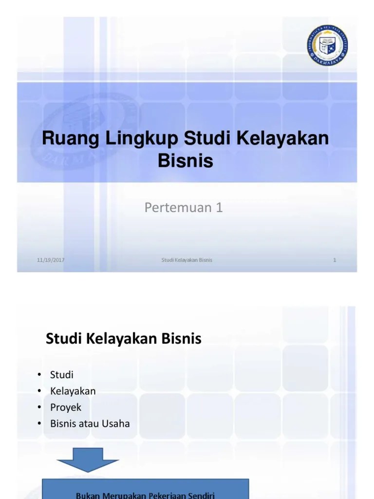 Download ppt pengantar studi kelayakan bisnis terlengkap silahkan download di link di bawah ini download silahkan memberikan saran dan komentar dibawah . 3 rencana perkuliahan pertemuan materi referensi 1 pengenalan desain studi kelayakan aspek pasar pembentukan group dan pemilihan kasus 2 aspek pemasaran . Do you have powerpoint slides to share. Studi kelayakan bisnis kedai kopi bang ben 1. Aspek sumber daya manusia dalam studi kelayakan bisnis. Suatu kegiatan yang mempelajari secara mendalam tentang suatu . Aspek hukum dalam studi kelayakan bisnis ? Menjawab pertanyaan "apakah bisnis yang akan dijalankan dapat memenuhi ketentuan hukum & perizinan di suatu wilayah ?